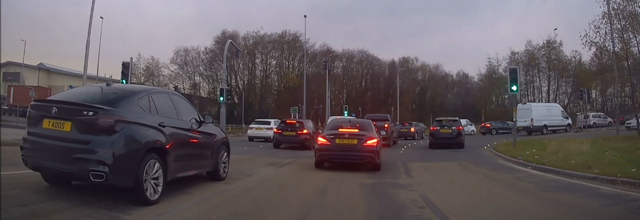 Illegally spaced chav plate. Driver also couldn't make his mind up what lane to be in.