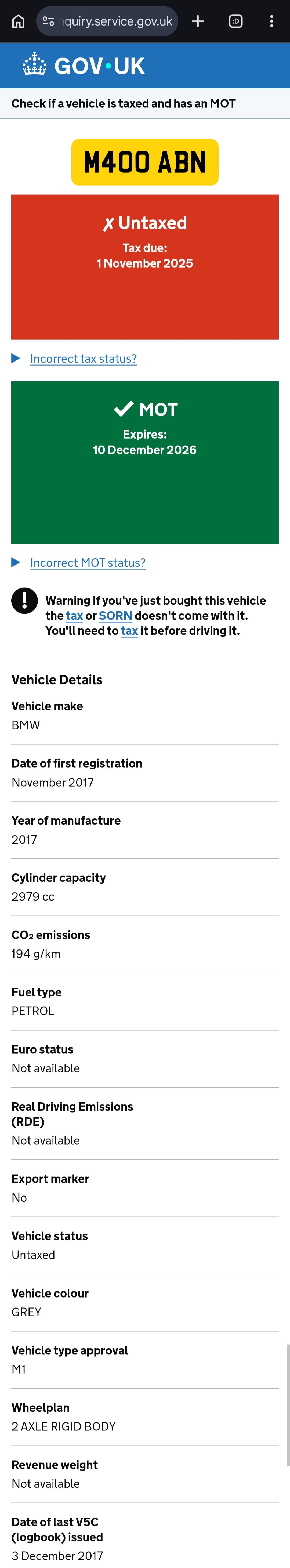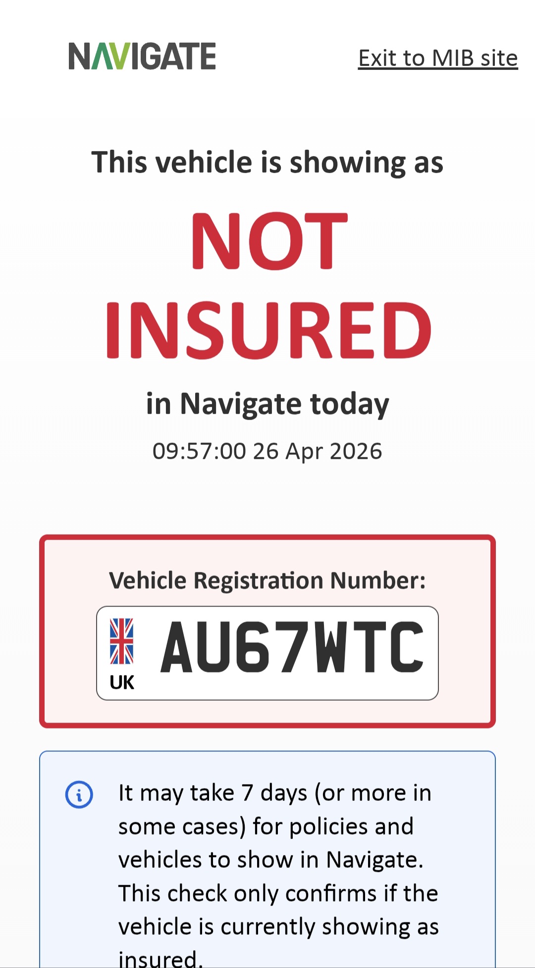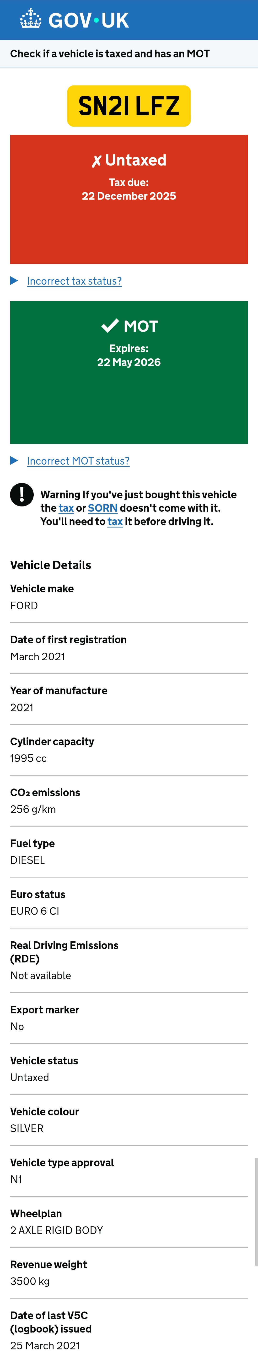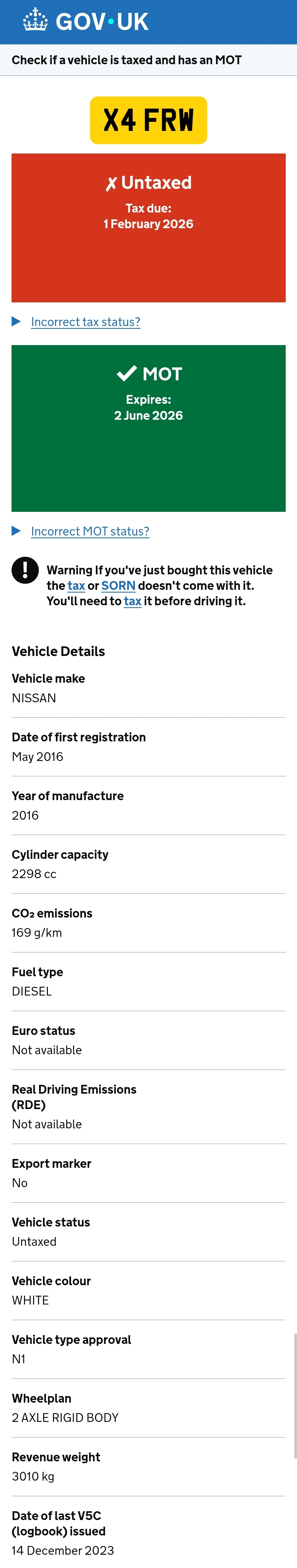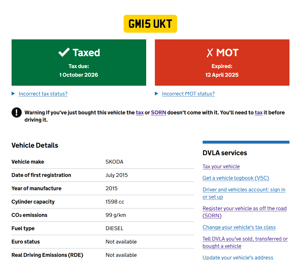 Could not be found on the DVLA platform. Please double check the vehicle registration.