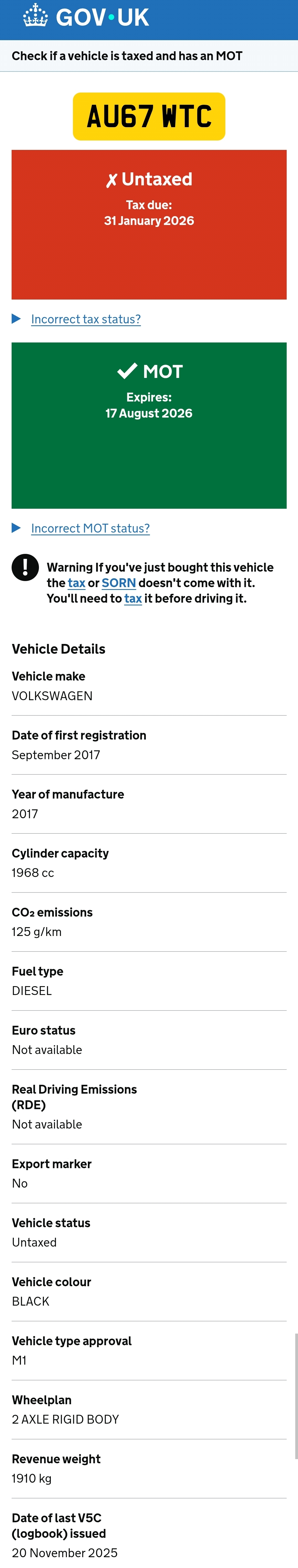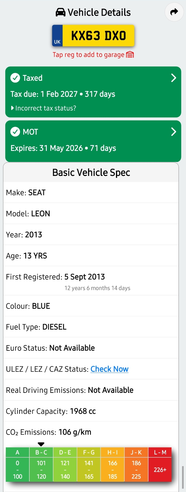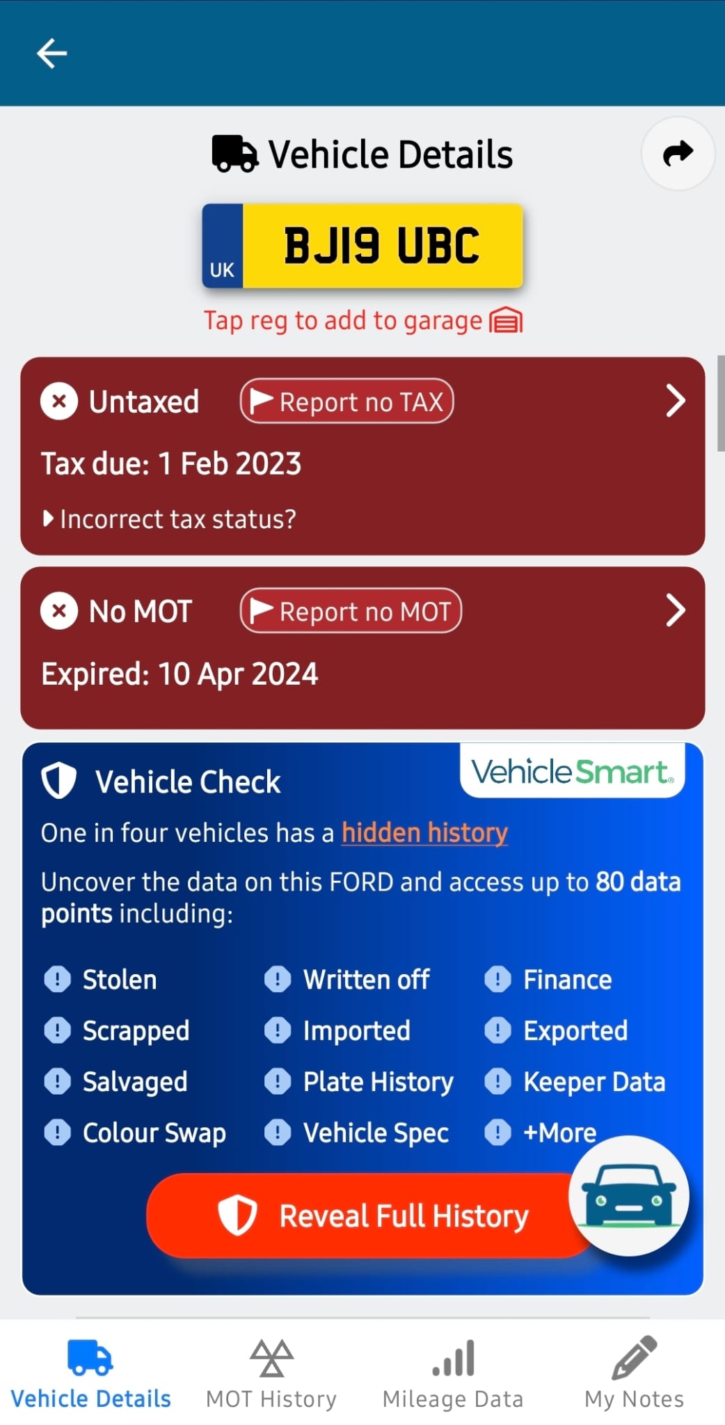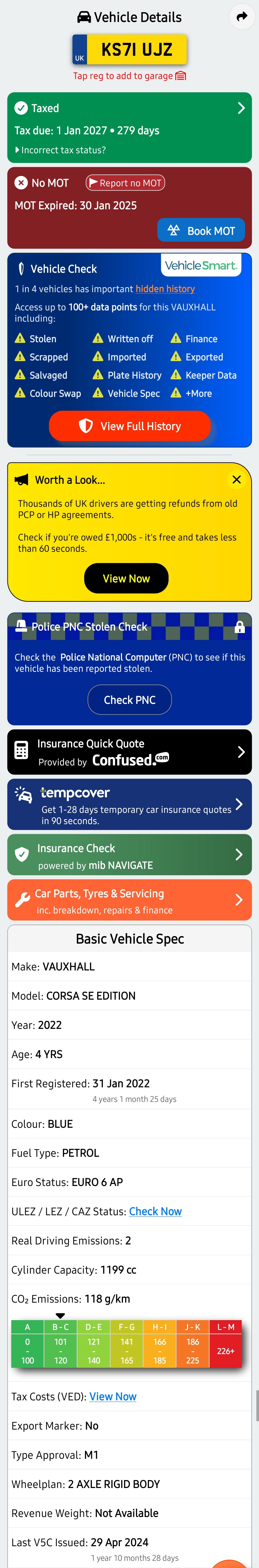 Could not be found on the DVLA platform. Please double check the vehicle registration.