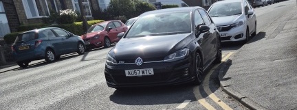 Kia Ceed driving out of Lancs. At the very last second they switch lanes to go back in to Lancs instead of on to Aldi, cutting in front of a car as they do so & get beeped at. They then park outside a coffee shop & go in, parking on the main road instead of going in to a nearby car park.
