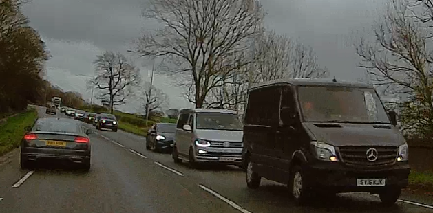 A seemingly aggressive lorry driver who was behind my friend and I heading north on the A370 towards Congresbury. He was right up our arse through the 30mph zone and when we finally turned left he hardly had any room to avoid hitting us. A safe stopping gap IS NOT sat in someone else's boot!