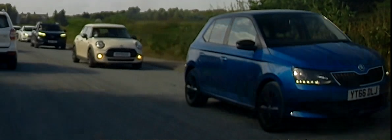 Skoda Octavia taxi. Residential 30mph area, approaching a primary school, cars parked both sides of the road & this taxi driver is driving along left hand holding his tupperwear box & right hand forking his dinner out as he drives along giving zero shits for everyone else that's on the road & walking by.