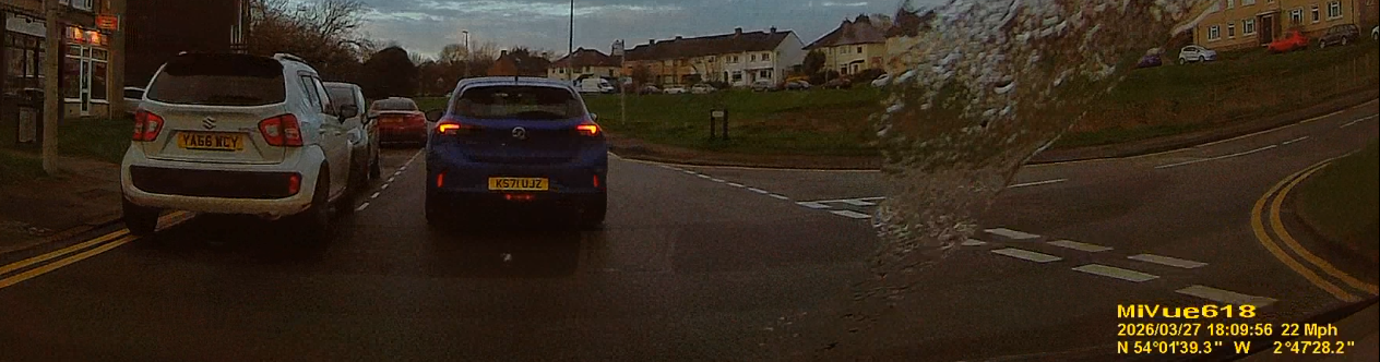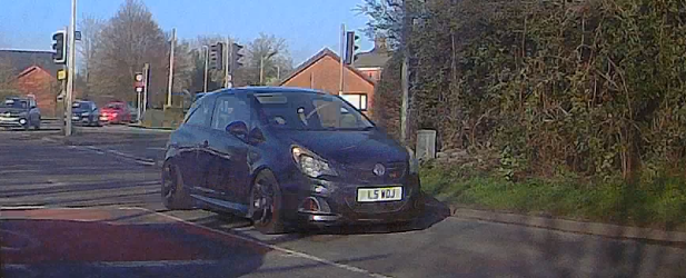 Idiot in a Ford Mondeo. I approach junction on a bike & this guy is a good bit behind me. I shift right because I'm going to turn right at the junction & this guy floors it, passing by ridiculously close literally on the junction itself. He turns off. Later on I see this idiot at the sports centre.