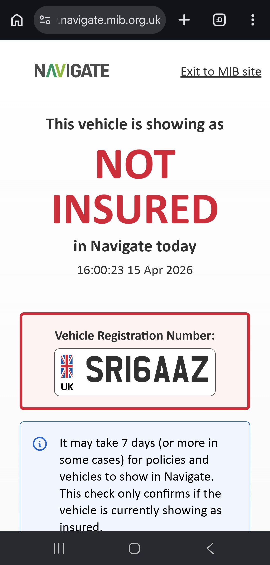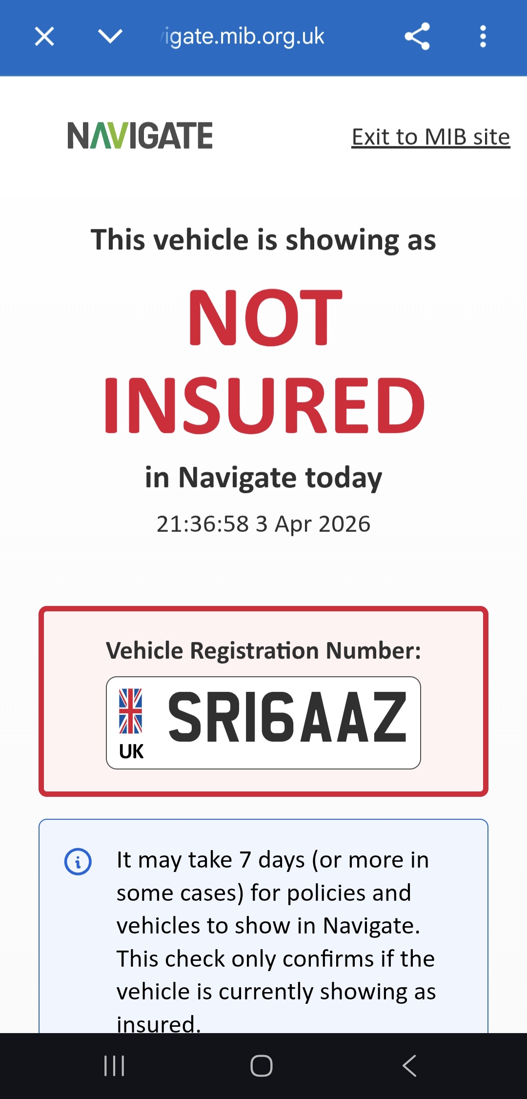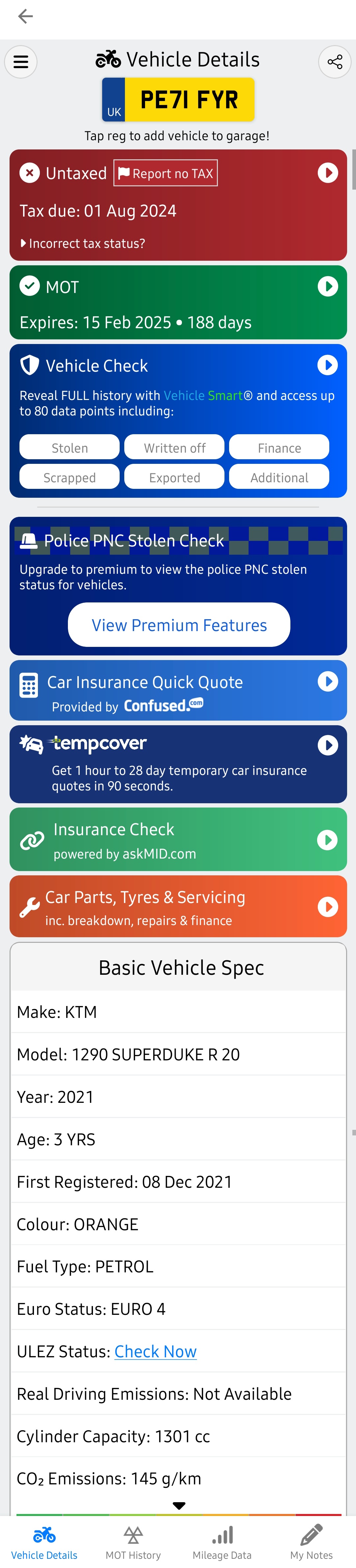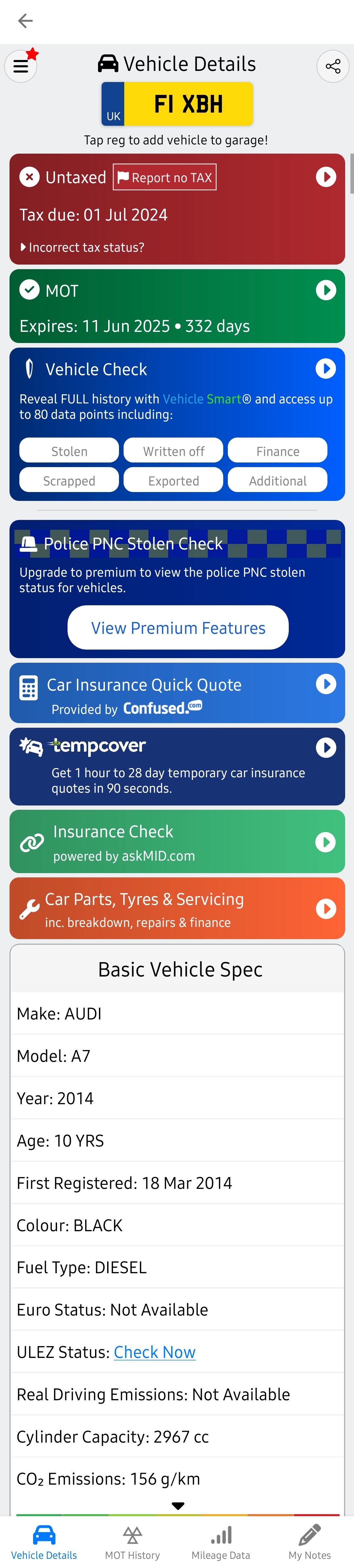 Could not be found on the DVLA platform. Please double check the vehicle registration.